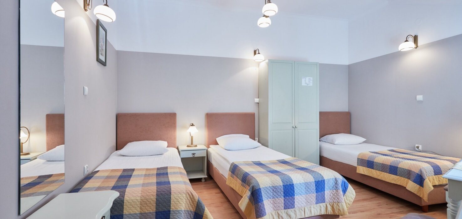 Batory Annex offers accommodation in double, triple, five/six-bed rooms and studio rooms. Each room in the Annex has a bathroom and is equipped with a TV and telephone, and has Internet access (Wi-Fi). The price of accommodation includes a rich buffet breakfast served in the restaurant of the three-star part of the hotel.